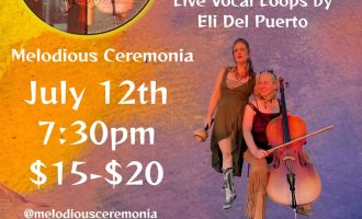 Live Cello and Voice loops at Omnihum Gallery. Immerse yourself in visionary art and live music.