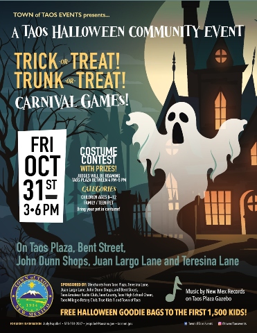 This free, family-friendly celebration brings together local merchants, organizations, and community groups for an afternoon of trick-or-treating, trunk-or-treat fun, games, music, and costumes. Festivities will fill Taos Plaza, Teresina Lane, John Dunn Shops, Bent Street, and Juan Largo Lane, creating a safe and spirited Halloween experience for all ages.