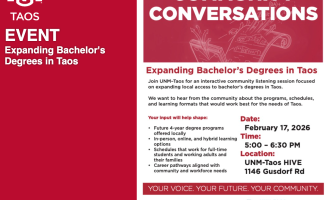 Expanding Bachelor's Degrees in Taos Join UNM-Taos for an interactive community listening sessi...