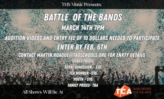 Get tickets here. Taos High School Music Program Presents Battle of the Bands Sat, Mar 1...