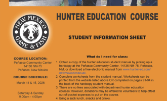 A Hunter Education Course will be held at the Peñasco Community Center, 14136 NM-75 in Peñasco, N...