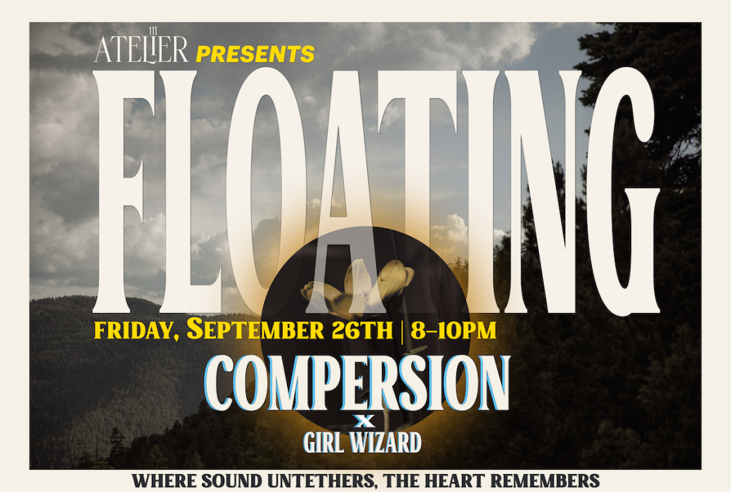On Friday, September 26, 2025, Atelier 111 presents FLOATING, featuring Girl Wizard and Compersion—an intentional, immersive music evening. Girl Wizard opens with ambient, textural electronics that invite quiet focus. Compersion follows, a groove-driven chamber ensemble (marimba, violin, upright bass, clarinet) blending composition and improvisation into warm, patient rhythms. Expect grounding, ethereal sound, soft light, and space for stillness or unhurried movement.