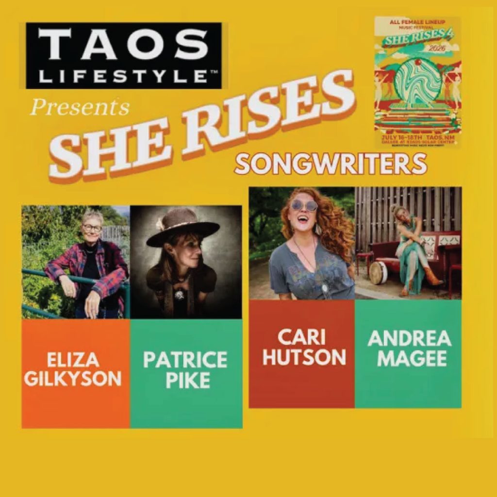 Join Taos Lifestyle for an intimate evening of exceptional music and storytelling featuring four powerhouse talents: Eliza Gilkyson, Patrice Pike, Cari Hutson, and festival founder Andrea Magee.