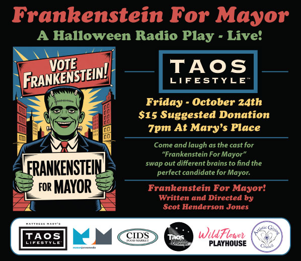 Come and laugh as the cast of “Frankenstein For Mayor” swap out brains from the graveyard while trying to create the perfect Mayoral candidate for the upcoming election. This live Halloween radio play will be sure to hit your funny bone.