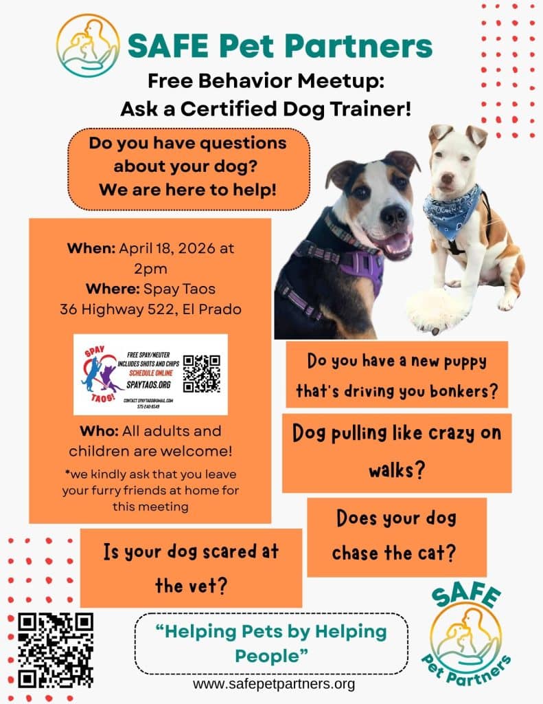Join SAFE Pet Partners and Star Dog Training for our monthly FREE Ask A Trainer Behavior Meet-Up. Come with all your pressing questions about your canine companion, your working dog and more! The event is also live streamed and recorded and you can’t attend in person sends your questions ahead of time and we will answer at the event.