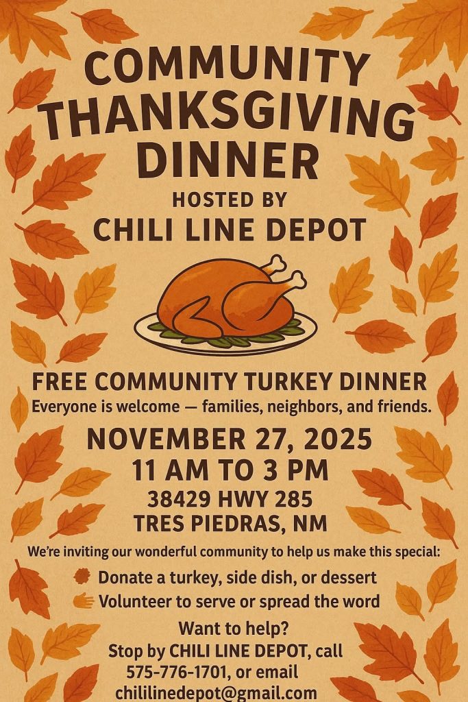 This Thanksgiving, don’t eat alone! Join your friends and neighbors for a wonderful Community Potluck at the historic Chili Line Depot!