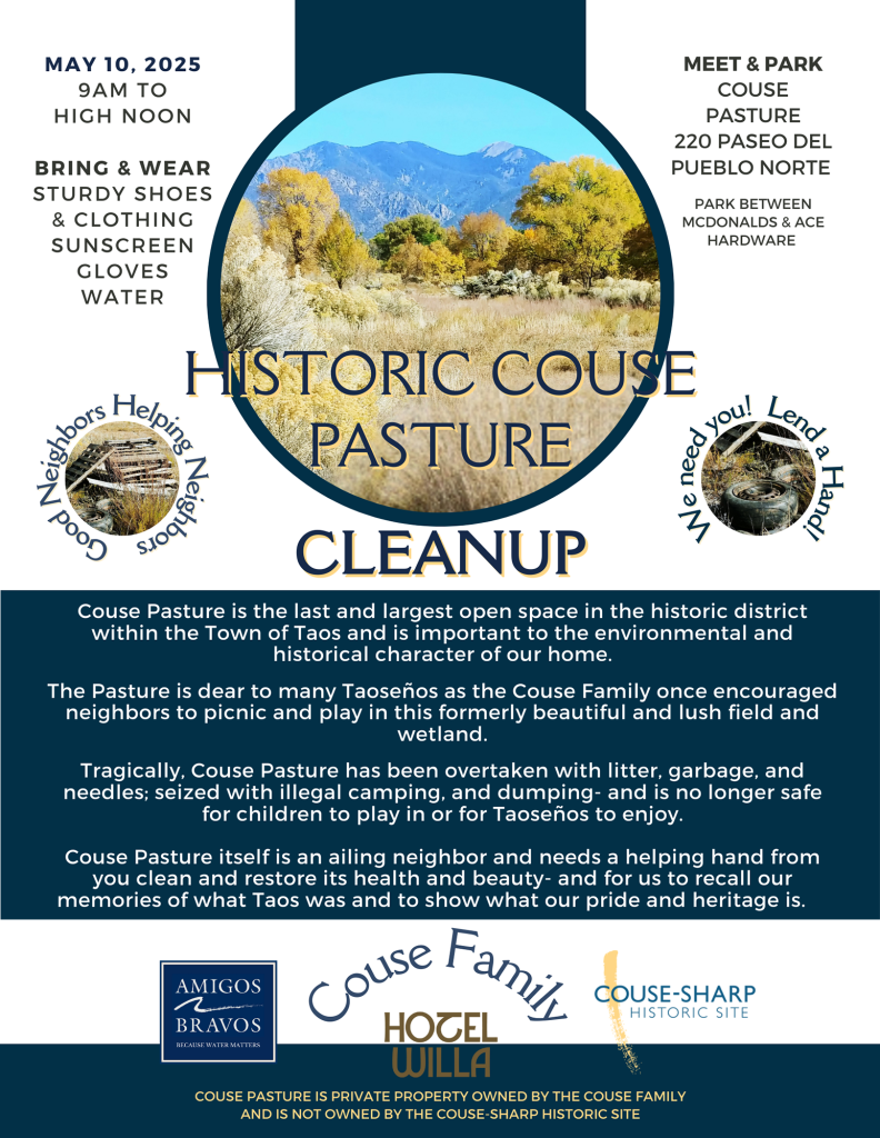 Historic Couse Pasture Clean-Up May 10, 2025 This event is over 6 months old, but I bet there is something great happening somewhere! View Current Taos Events! < Back to Events