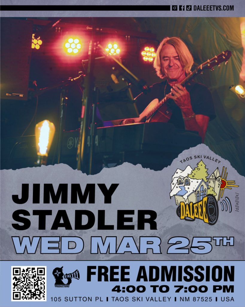 Unwind with the local legend and human jukebox, Jimmy Stadler live at DALEEE TSV on Wednesday, March 25th from 4–7 PM. Grab some food, sip on a drink, and settle into free live music after a full day on the slopes at Taos Ski Valley. No cover, just good vibes.