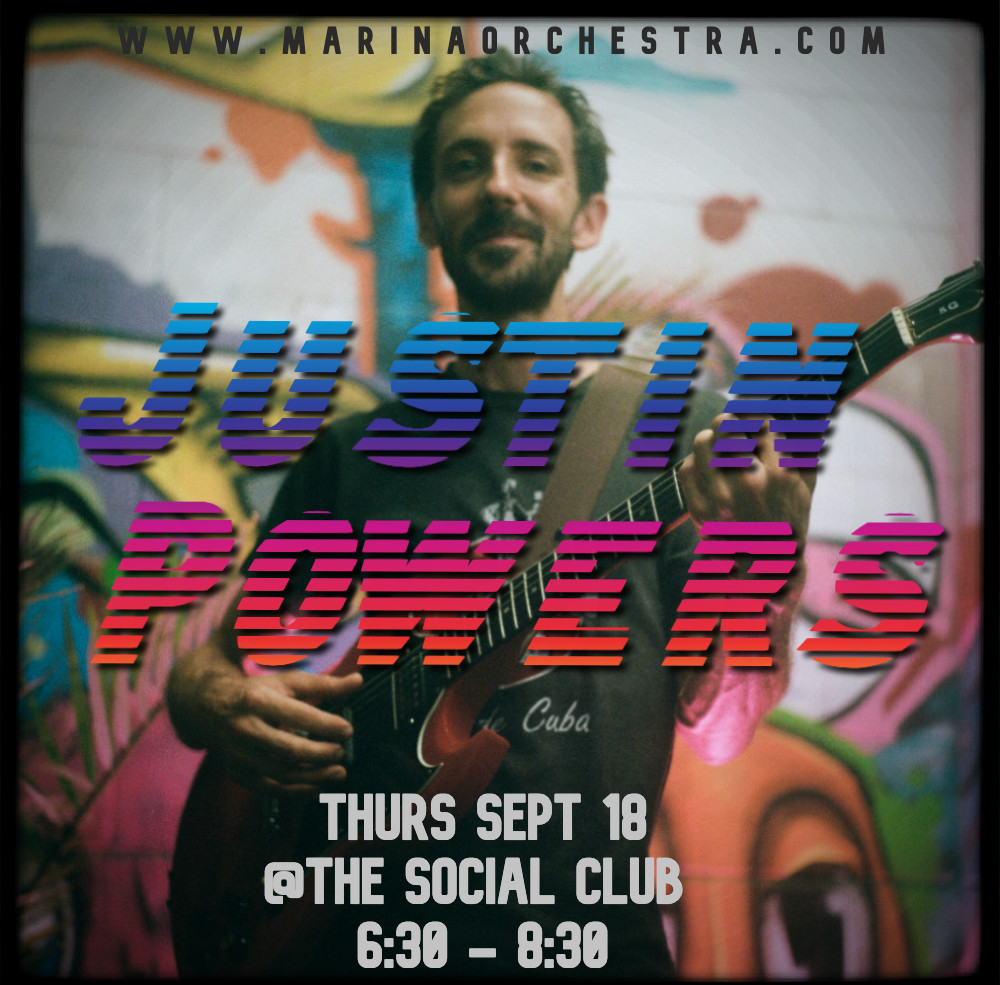 The creative force behind Marina Orchestra is frontman and songwriter, Justin Powers. With his unique ability to craft feel-good and uplifting music, Powers brings his vision to life both as a solo artist and through his band. As a solo performer, he distills the essence of his songs—originally designed for a larger six- to ten-piece ensemble—into a more stripped-down, intimate experience. This solo set not only showcases his exceptional songwriting but also provides audiences with a closer and more personal connection to his music, allowing each note and lyric to sink in. Rounding off his solo set is an arsenal of covers from golden oldies (i.e. Cupid – Sam Cooke, Up on the Roof – The Drifters…) to deep cuts (i.e. Queen Bee – Taj Mahal, The Harder They Come – Jimmy Cliff).