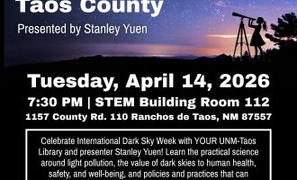 Located at the UNM-Taos Klauer Campus, 1157 County Rd. 110. Presentation will be held in the STEM Building Room 112.