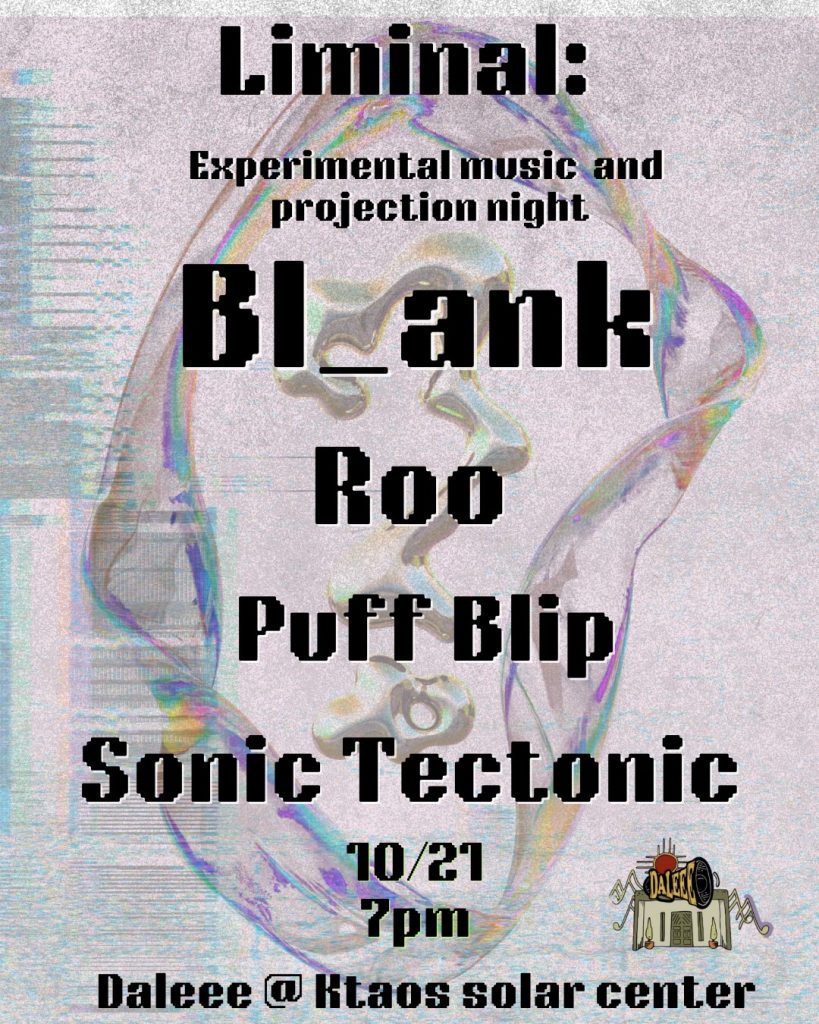 Accompanied by local Taos artists, Roo, sonic tectonic, and a new project from duo, Puff Blip.