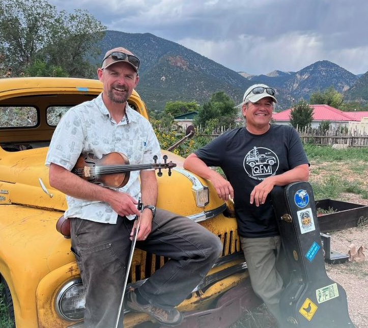 High Desert Acoustic Duo is a collaboration of cello, fiddle, guitar, and vocals, drawing from a wide range of musical traditions alongside original songs. For more than 20 years, Mark Dudrow and Justin Dean have been entertaining audiences throughout the upper Rio Grande region. Their sound blends thoughtful songwriting with tunes inspired by landscapes near and far—rooted deeply in the rugged beauty of the high desert.