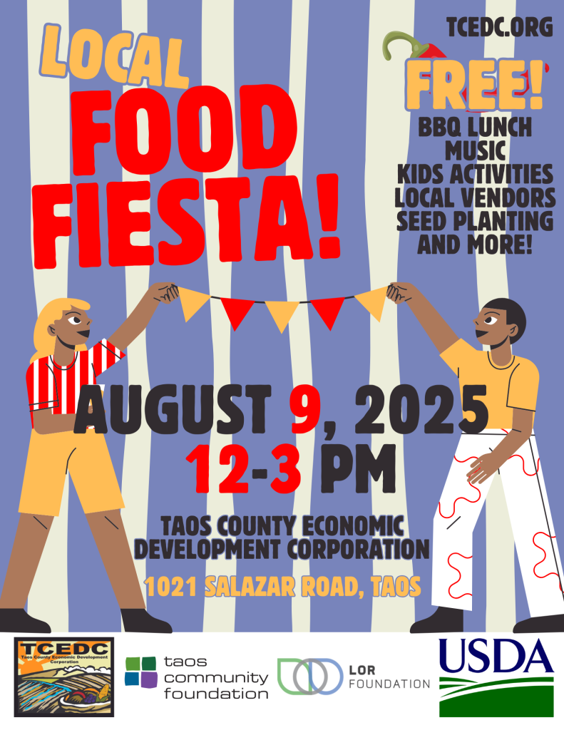 Celebrate our vibrant local food community with a FREE, family-friendly event on Saturday, August 9 at TCEDC (1021 Salazar Rd, Taos) from 12–3 PM!