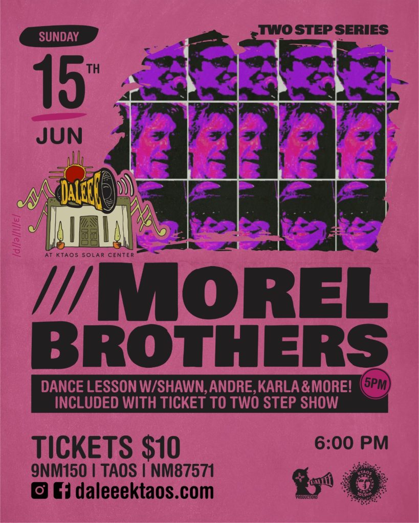 Join us on June 15th at DALEEE KTAOS for an evening of country swing and two-steppinâ fun! Arrive at 5 PM for a free dance lesson included with your $10 ticket, and then enjoy live music from The Morel Brothers starting at 6 PM. Don’t miss out on this lively night of dancing and great tunes!