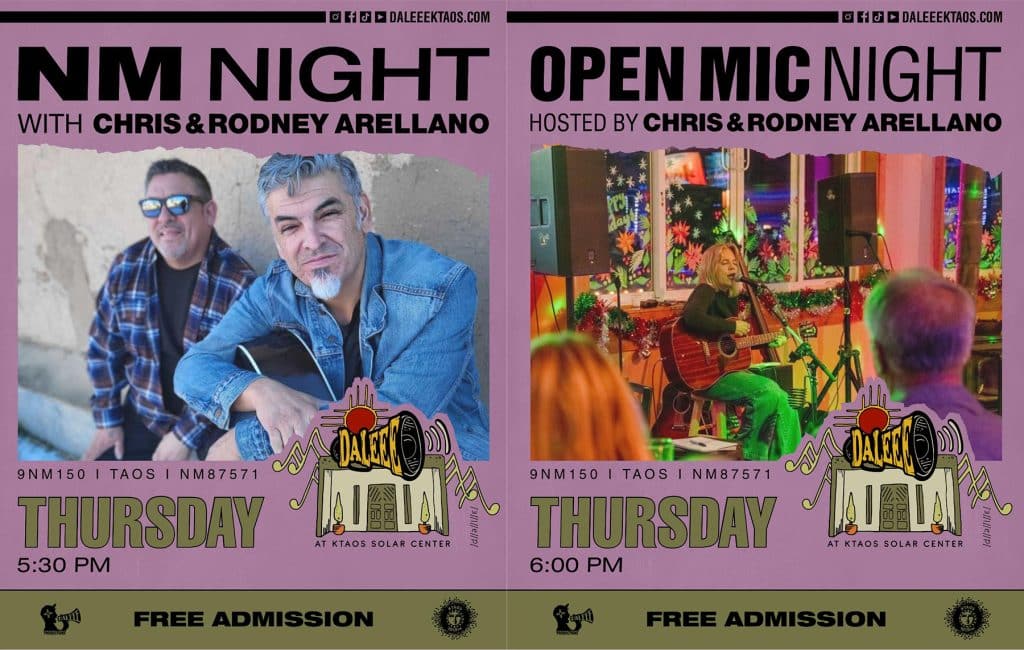 Catch Chris & Rodney Arellano live at 5:30 PM for New Mexico night. Their free set will warm up the mics before they host Open Mic starting at 6:30 PM. And if singing isn’t your thing, stick around for Salsa Class at 7PM. It’s a night of community, creativity, and good energy every Thursday at DALEEE KTAOS!