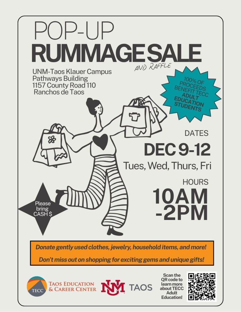 Don’t miss out! Shop for exciting gems and unique gifts! 100% of proceeds benefit Taos Education & Career Center (TECC) Adult Education students. Please bring cash—a sale and raffle will be held in the Pathways building.