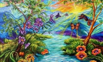 Shari Ubechel's 3D Paintings showing at the Farmhouse Cafe.