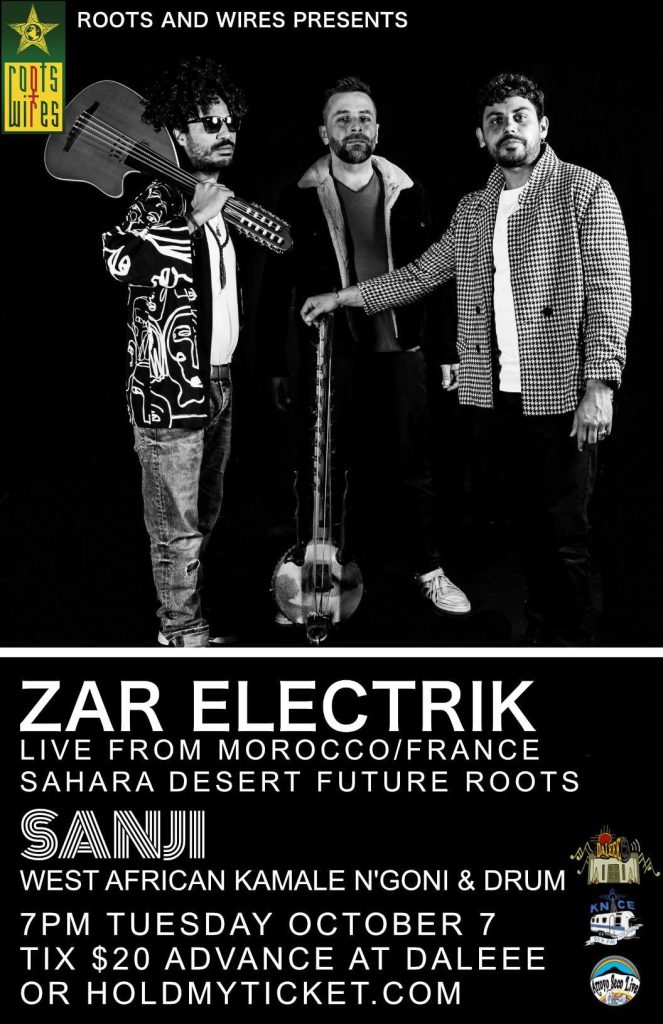 ZAR ELECTRIK brings their Sahara Desert Future Roots sound to DALEEE KTAOS – presented by Roots and Wires – for a night of hypnotic grooves and otherworldly energy. Taos’ Sanji opens.