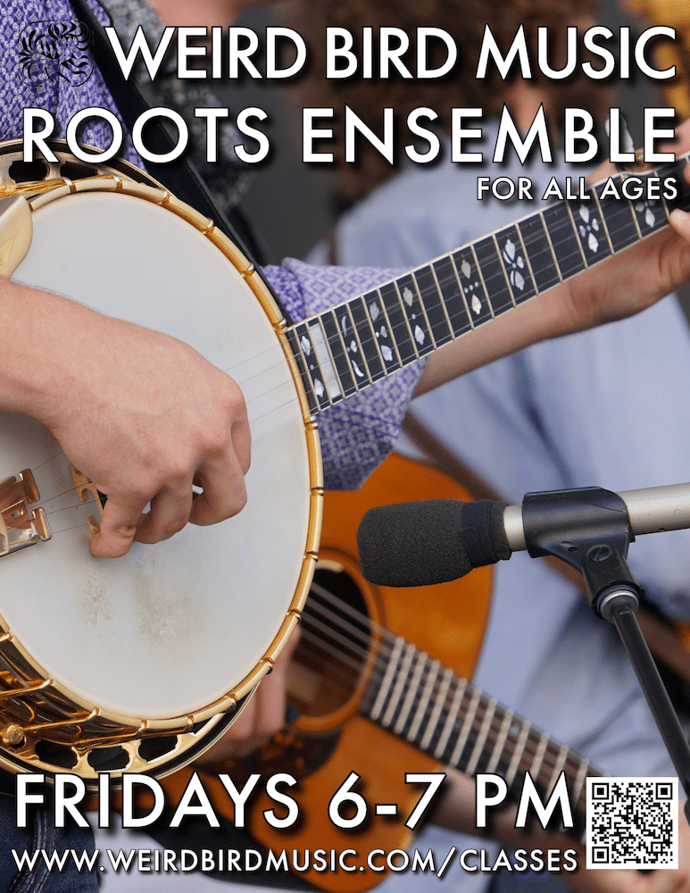 Each month, the ensemble learns four songs spanning classic roots styles and contemporary interpretations. Students focus on groove, storytelling, improvisation, and the art of ensemble playing. Guitars, banjos, fiddles, mandolins, basses, voices, percussion — all acoustic instruments are welcome!