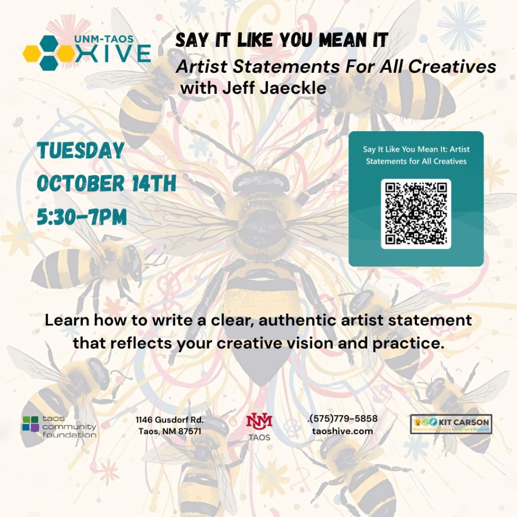 Are you an artist or creative? Attend this FREE workshop taught by HIVE’s Dr. Jeff Jaeckle! You will learn to write a clear and authentic artist statement that reflects your work and vision. Strong artist statements can be used for gallery submissions, grant applications, websites, marketing material, etc. See you there!