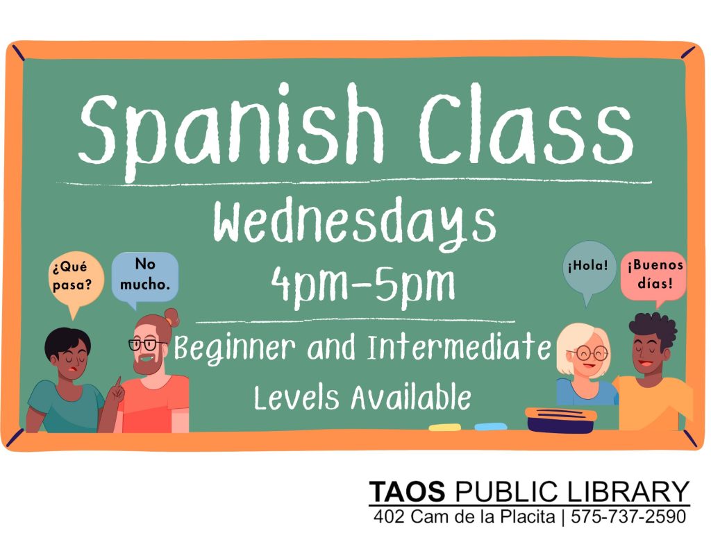 Join us at the Taos Public Library every Wednesday 4-5pm for Spanish Class! All levels welcome.