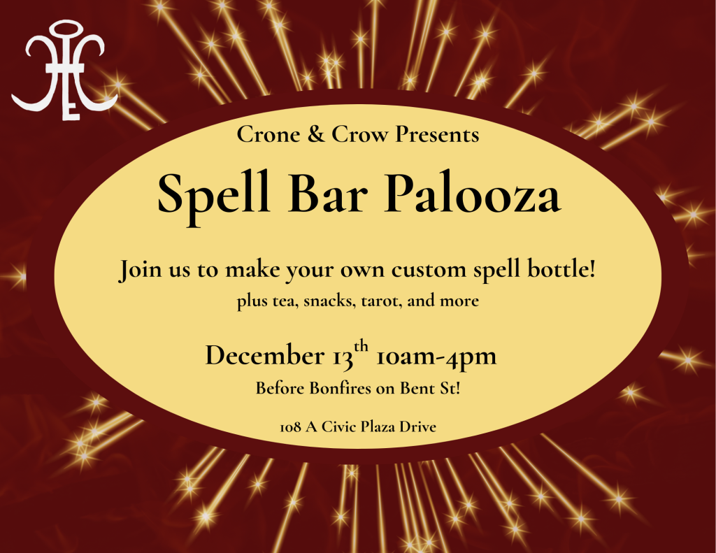 Looking for a unique gift? Join us to make a spell bottle or bag at our spell bar. Craft a beautiful blessing for the special people in your life. (Magical assistance available if needed.)