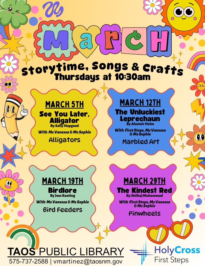 Join us every Thursday at 10:30 for songs, a story, and an activity. Free and fun for the whole family!
