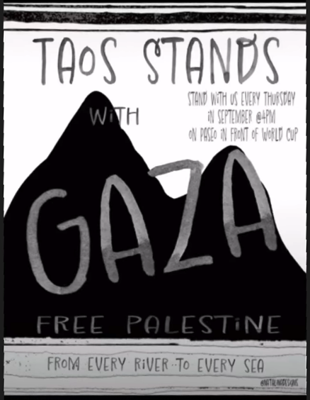 Taos Stands with Gaza, every Thursday in September at 4pm.