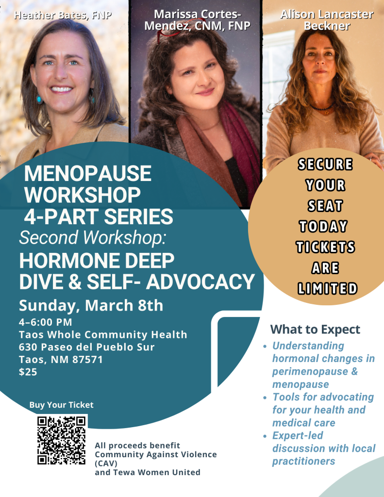 Join us for the next workshop in our Menopause Series on Sunday, March 8 | 4–6 PM at Taos Whole Community Health.