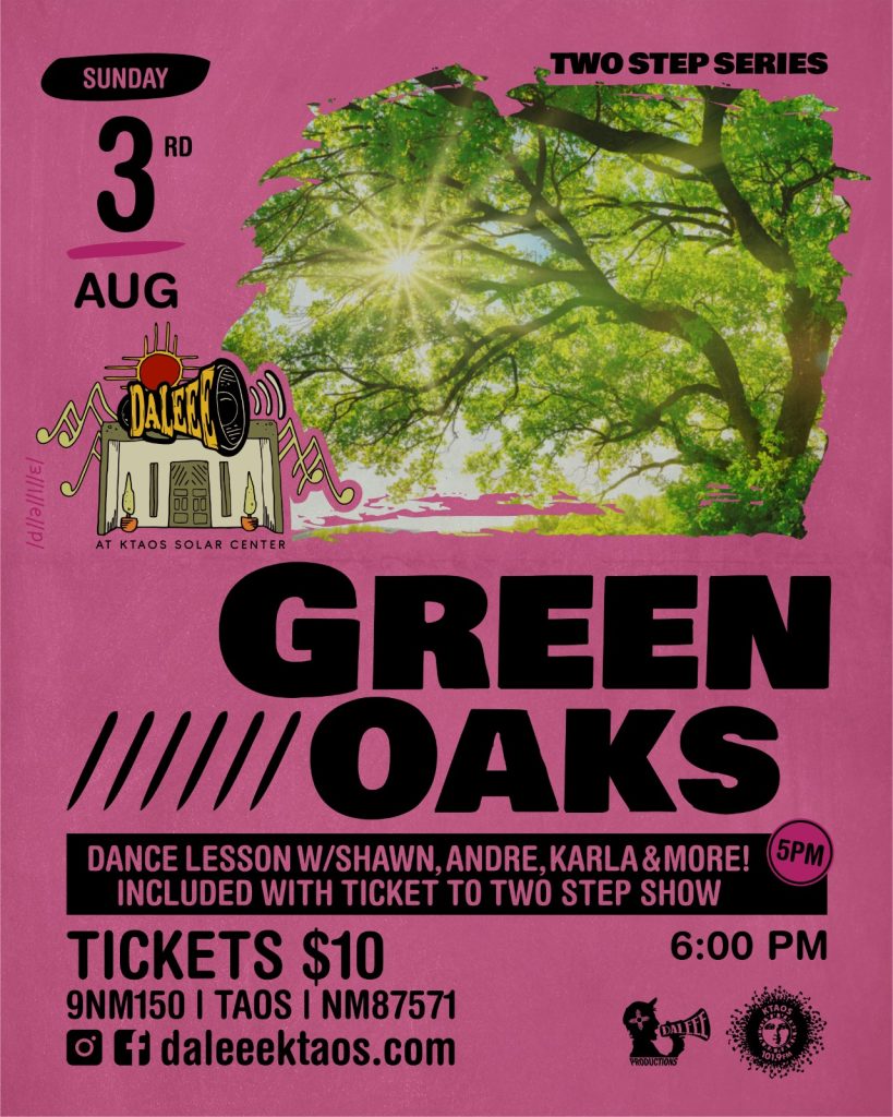 Get ready to dance your heart out at DALEEE KTAOS on Sunday, August 3rd with The Green Oaks 🌿💃 — a love-song infused band blending rock, country, blues, R&B, and swing for the perfect Two Step Sunday soundtrack!