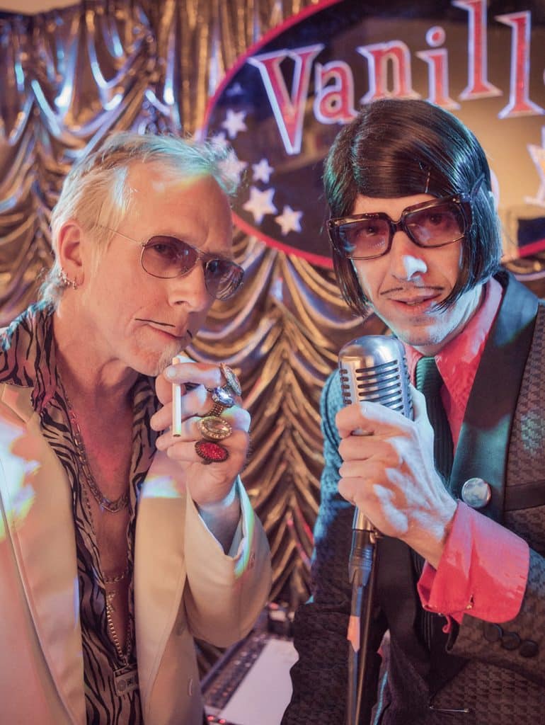 Vanilla Pop brings a glitzy, tongue-in-cheek Vegas-style lounge show to Taos—two sharp frontmen (Al Dente and Lester Moore) delivering dance-floor favorites with keys, vocals, and theatrical flair. Expect a high-energy mix that jumps from ‘40s standards to disco and ‘80s pop, built for singing along and moving your feet. Perfect for a late-night crowd that wants a show as much as a party.