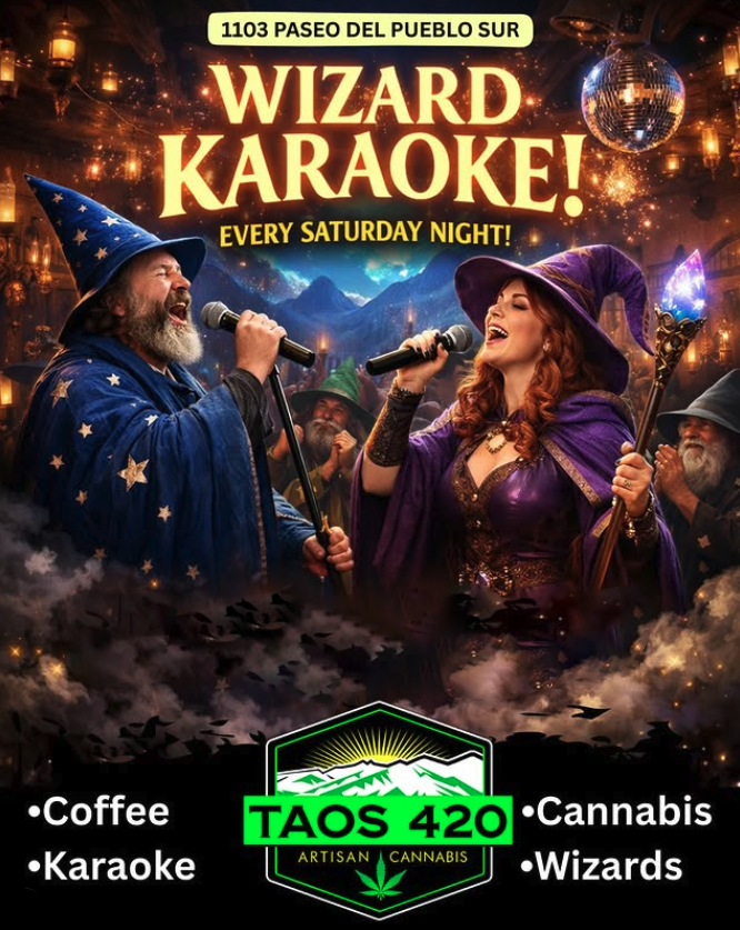 Wizard Karaoke! Come sing Karaoke dressed as a wizard in Taos’ ONLY dispensary/ coffee lounge!
