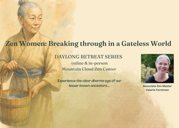 In a series of five Zazenkai/Daylong Retreats throughout 2025, Valerie presents us with a unique opportunity to experience the insights of ancestors rarely encountered due to the biases of their times. Valerie’s authentic dharma experience is matched by her skill as a scholar as she helps us learn about these historical figures, while helping us fill our cup on the deep well of practice.